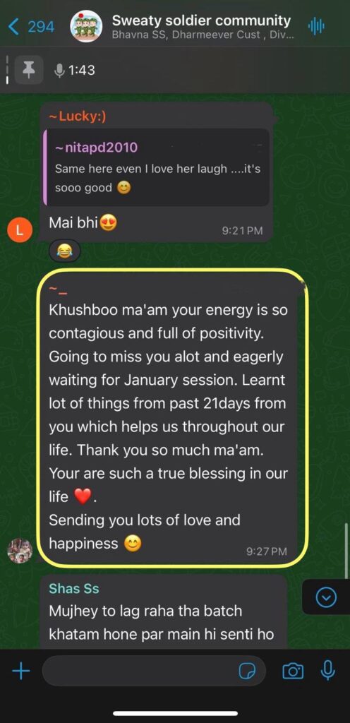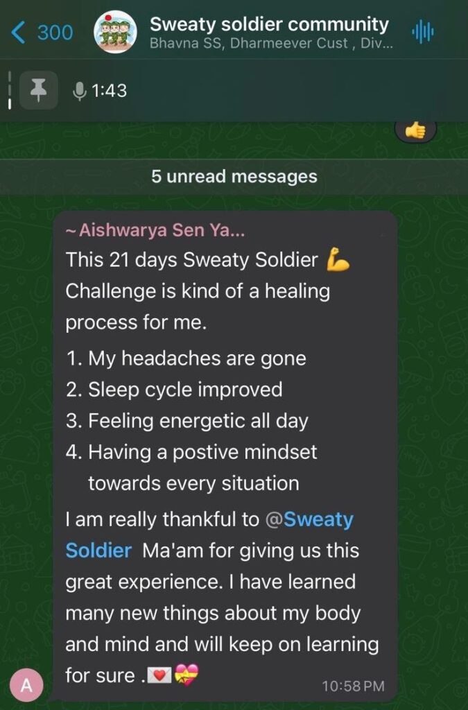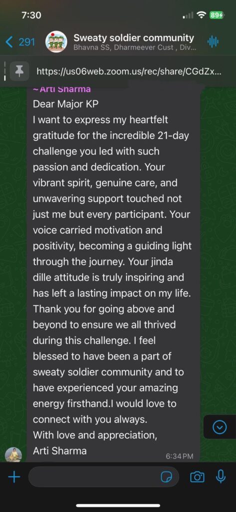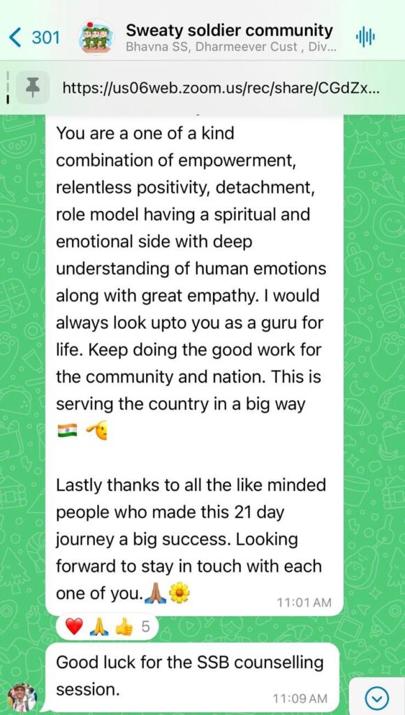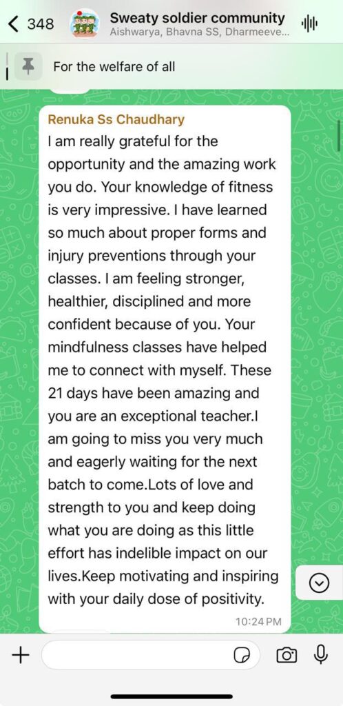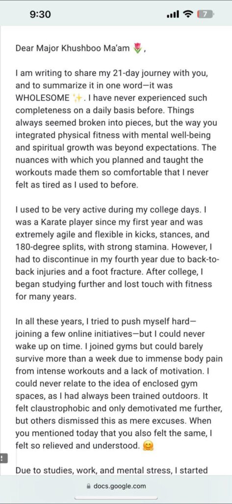 Guidance from Major Khushboo Patani (Retd.) Led by an experienced fitness coach, counselor, and spiritual guide.